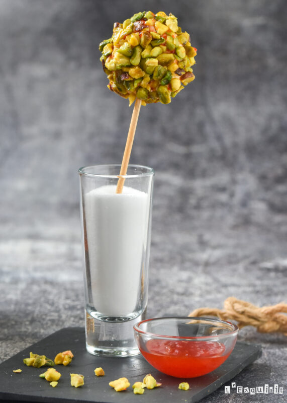 Pintar con la mermelada y rebozar con los pistachos. Dejar enfriar en la nevera hasta servir.