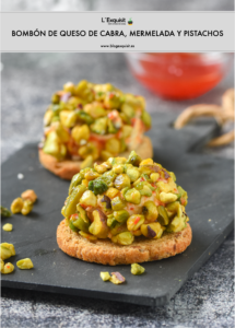 Para preparar estos bombones utilizo el queso de cabra mini ya cortado en rodajas, en un momento tengo el aperitivo montado. Podéis utilizar la mermelada que más os guste y el rebozado puede ser con almendras o avellanas si no sois amantes de los pistachos…