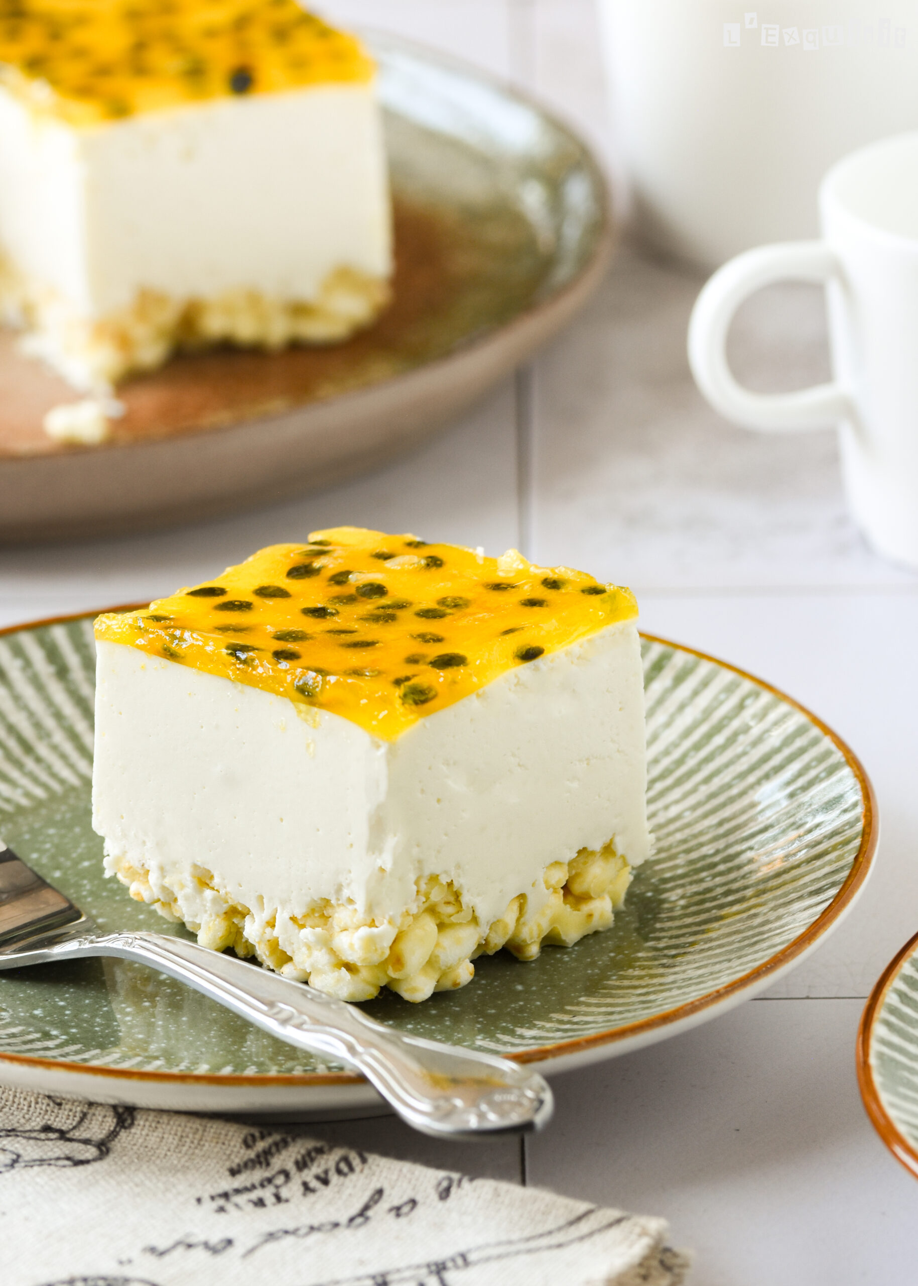 Calentar la fruta de la pasión en un cazo con el zumo de limón y el azúcar, cocinar durante 5 minutos. Desleír la gelatina escurrida. Dejar enfriar y verter sobre la tarta enfriada. Dejar reposar en la nevera 4 h.