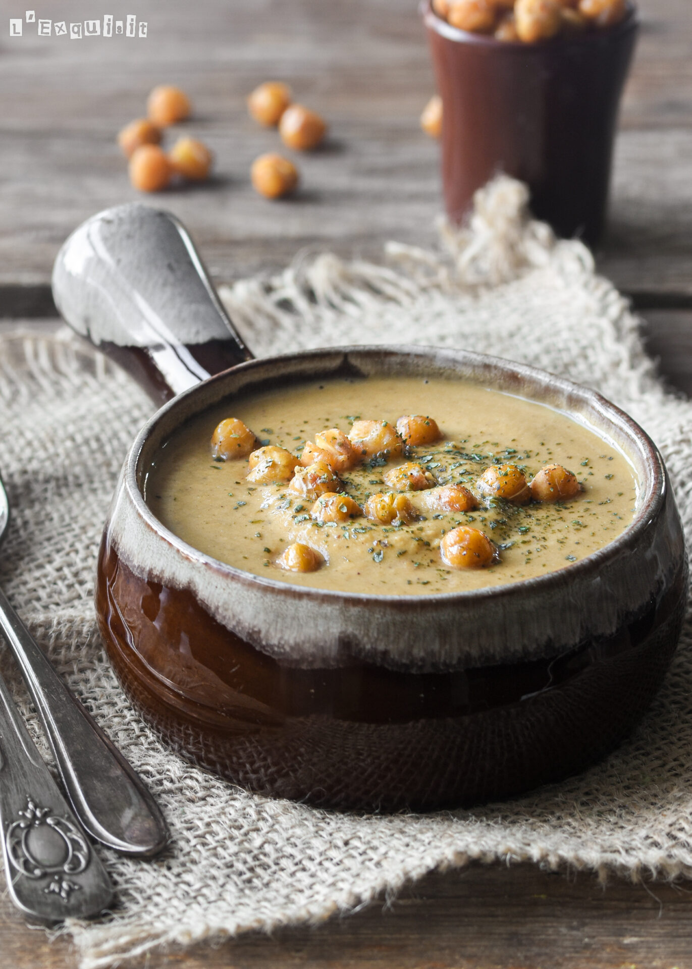 Servir la crema con los garbanzos tostados.