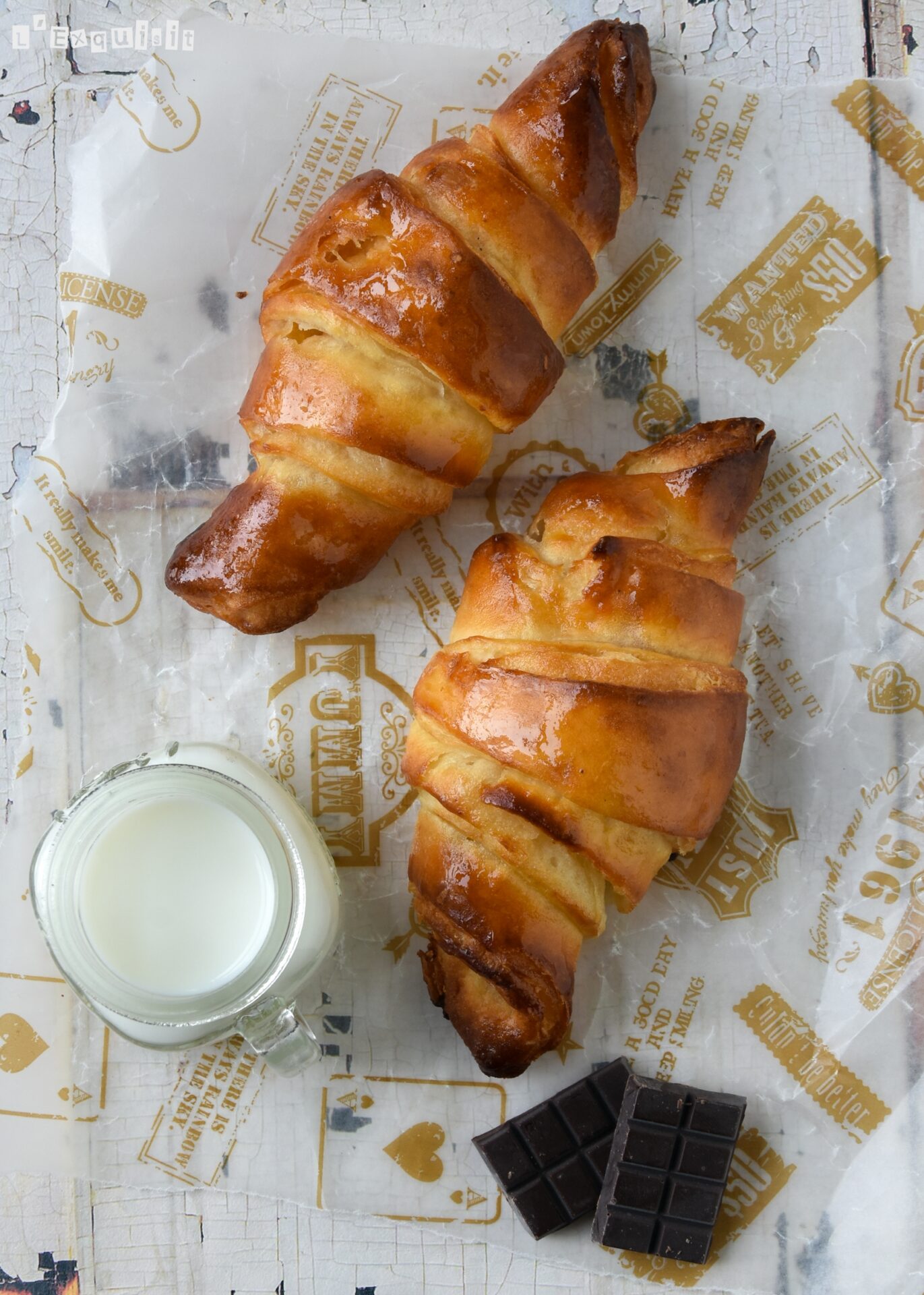 Sugerencias: para hacer mini croissants (por ejemplo para una merienda con niños), hacerlos de 6,5×12,5 cm. (dividiendo la masa de 26×40 cm. por la mitad a lo largo). Saldrán 20 minis+4 pequeños