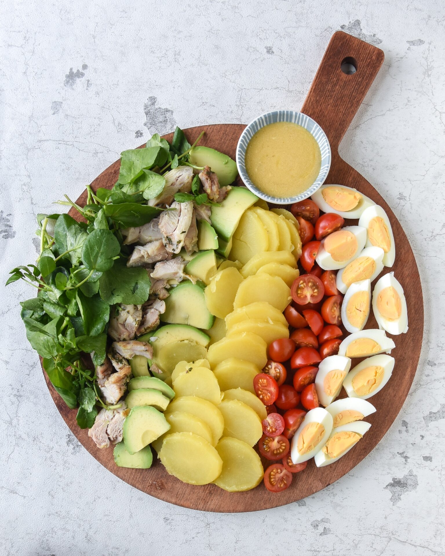 La ensalada Cobb suele llevar aparte de los ingredientes indicados, también bacon y queso azul, pero es una ensalada de la que hay múltiples versiones, ésta es la que me gusta a mí…