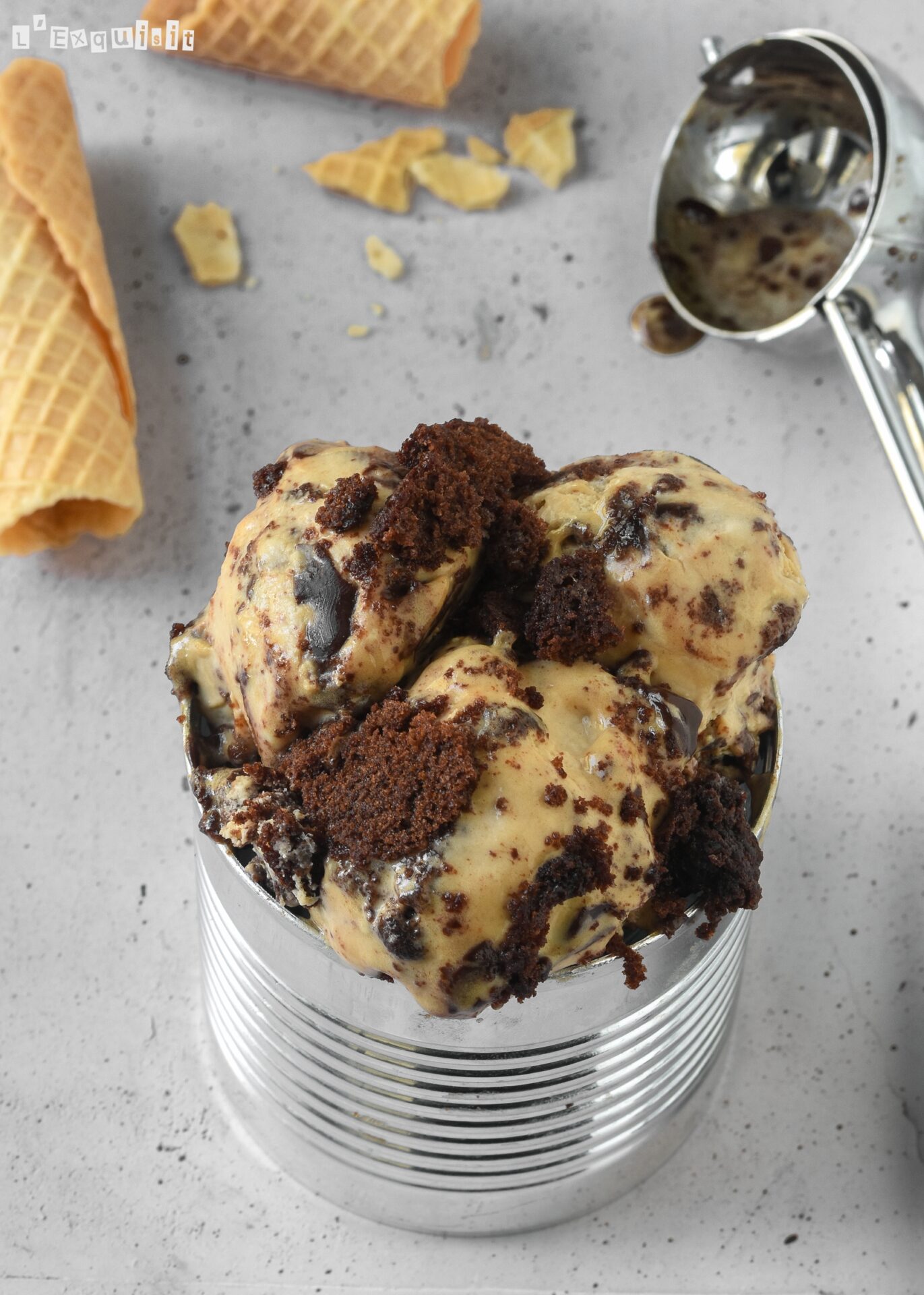 Antes de servir, dejarlo atemperar 5-7 minutos y servir acompañado del brownie.