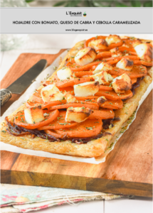 Las tartas preparadas con hojaldre son la mejor solución para una cena frugal, podemos elegir nuestros ingredientes y las combinaciones son infinitas. En la receta de hoy, el dulzor del boniato y la cebolla caramelizada combina a la perfección con el queso de cabra.