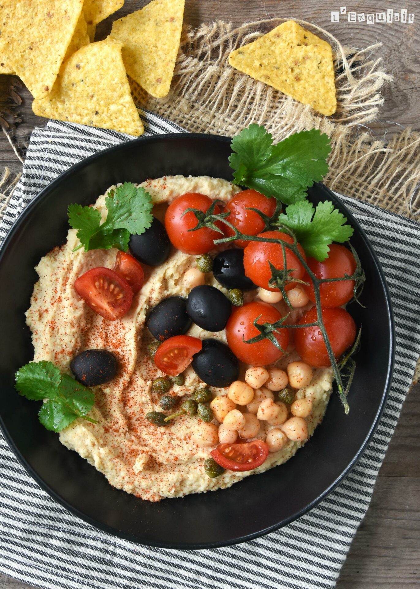El hummus se ha convertido los últimos años en un aperitivo popular, porque tanto sirve para comer con tostaditas, como con bastones de hortalizas o preparar pizzas y bocadillos…os dejo tal como me gusta servirlo a mí, con un topping para hacerlo completo…