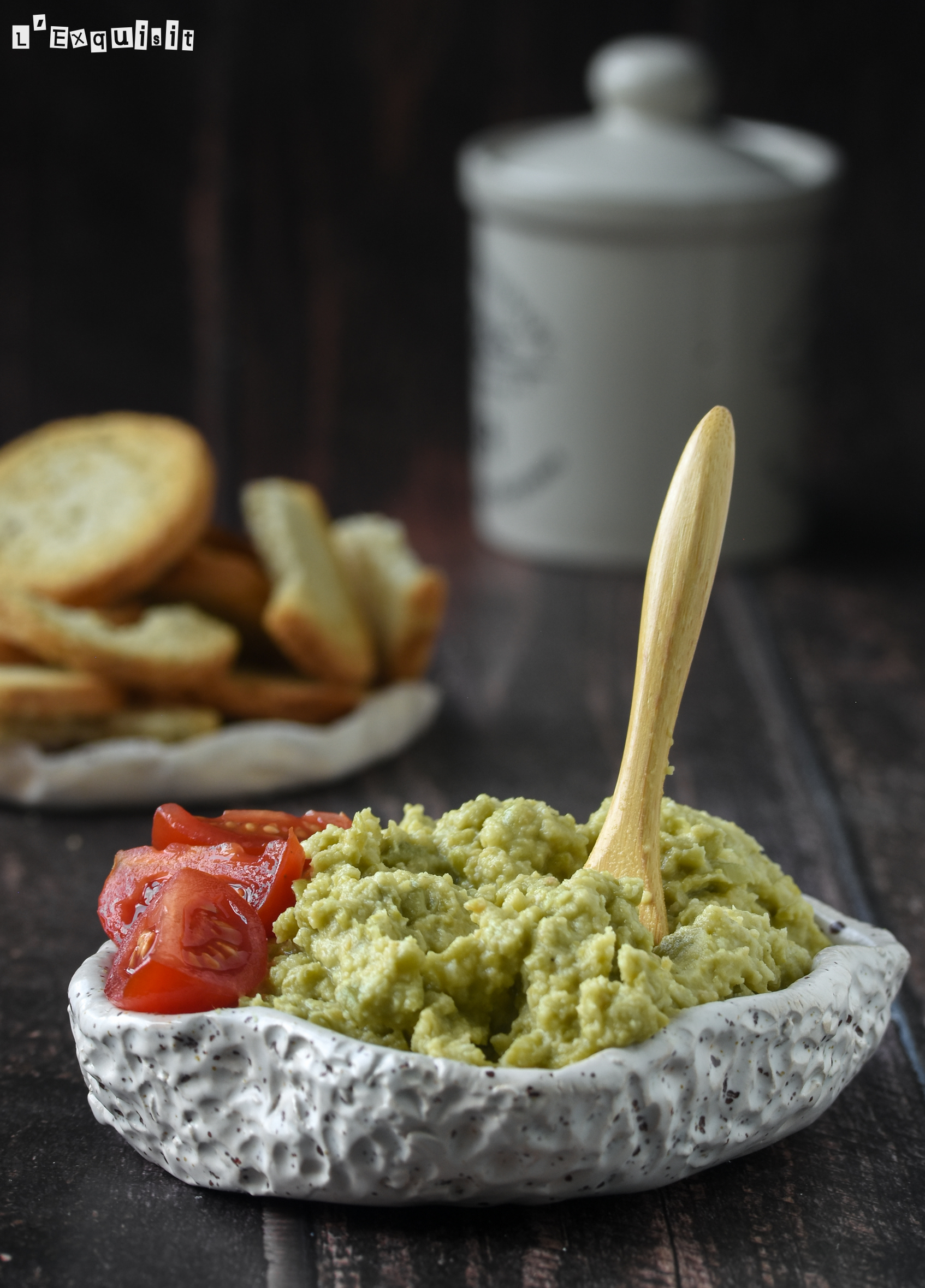 Partiendo del tradicional hummus, podemos preparar distintas variedades, como esta con guisantes.