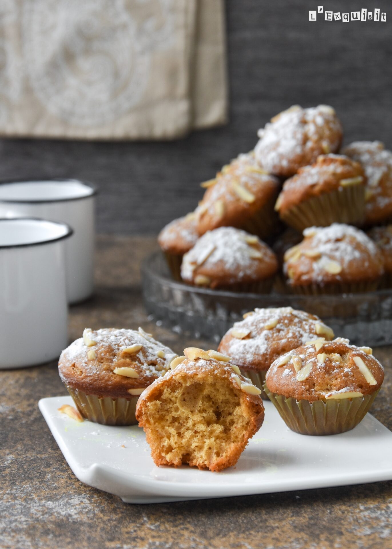 Remover la mezcla, disponer en una manga pastelera y rellenar las cápsulas de magdalena hasta las ¾ partes. Repartir las almendras por encima. Hornear a 180 grados durante 20-25 minutos, hasta que al introducir un palillo de madera en el centro, éste sale limpio. Dejar enfriar encima de una rejilla (si habéis utilizado un molde de aluminio + cápsulas de papel, entonces sacarlas del molde rígido).