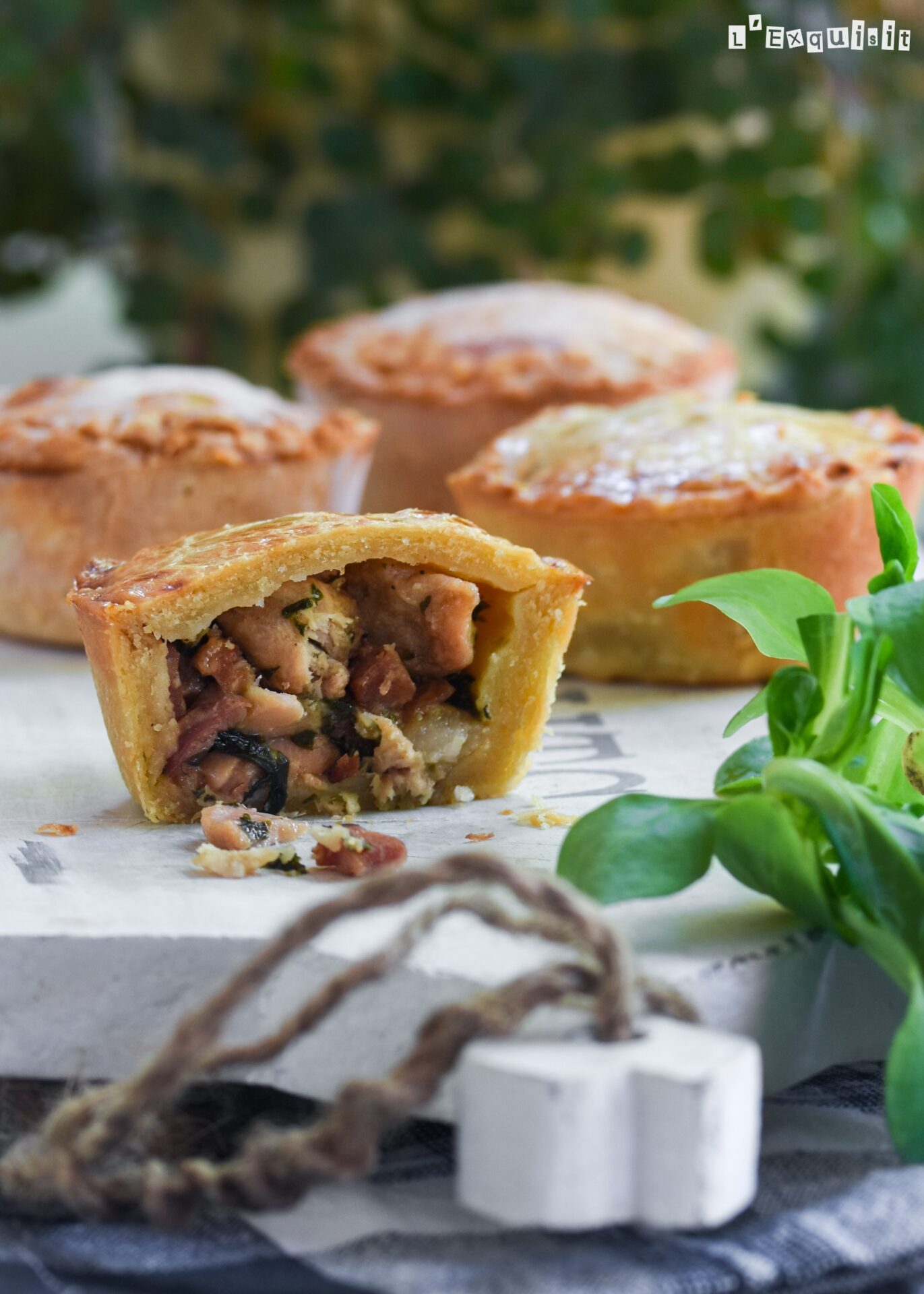 Rellenar con el pollo (sacar con antelación si lo habéis hecho el día anterior) y tapar con los círculos. Pintar con la mezcla de huevo y nata. Cortar el exceso de masa con la ayuda del aro de emplatar y marcar con un tenedor, para que queden bien cerrados. Hacer un agujero con un palillo en el centro de la tapa (agrandándolo con movimientos circulares), para que salga el vapor. Pintar de nuevo. Dejar reposar, sin tapar, 30 minutos en la nevera. También se pueden congelar en este punto.