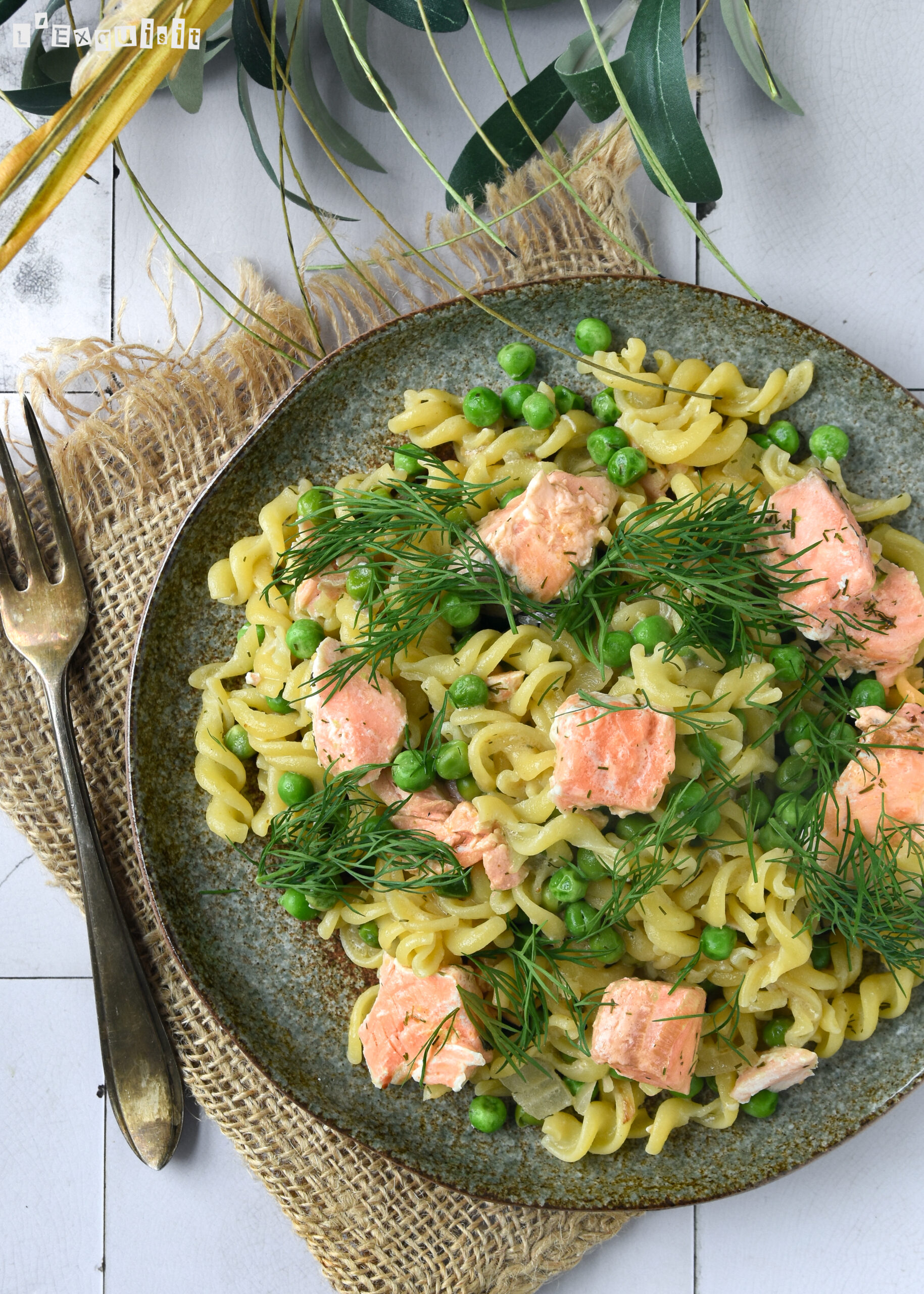 Esta es una de las recetas más fáciles del blog: el salmón se cocina sobre la pasta – al vapor – y luego solo queda preparar una rica salsa que lo acompaña, en apenas 15 minutos está servido…