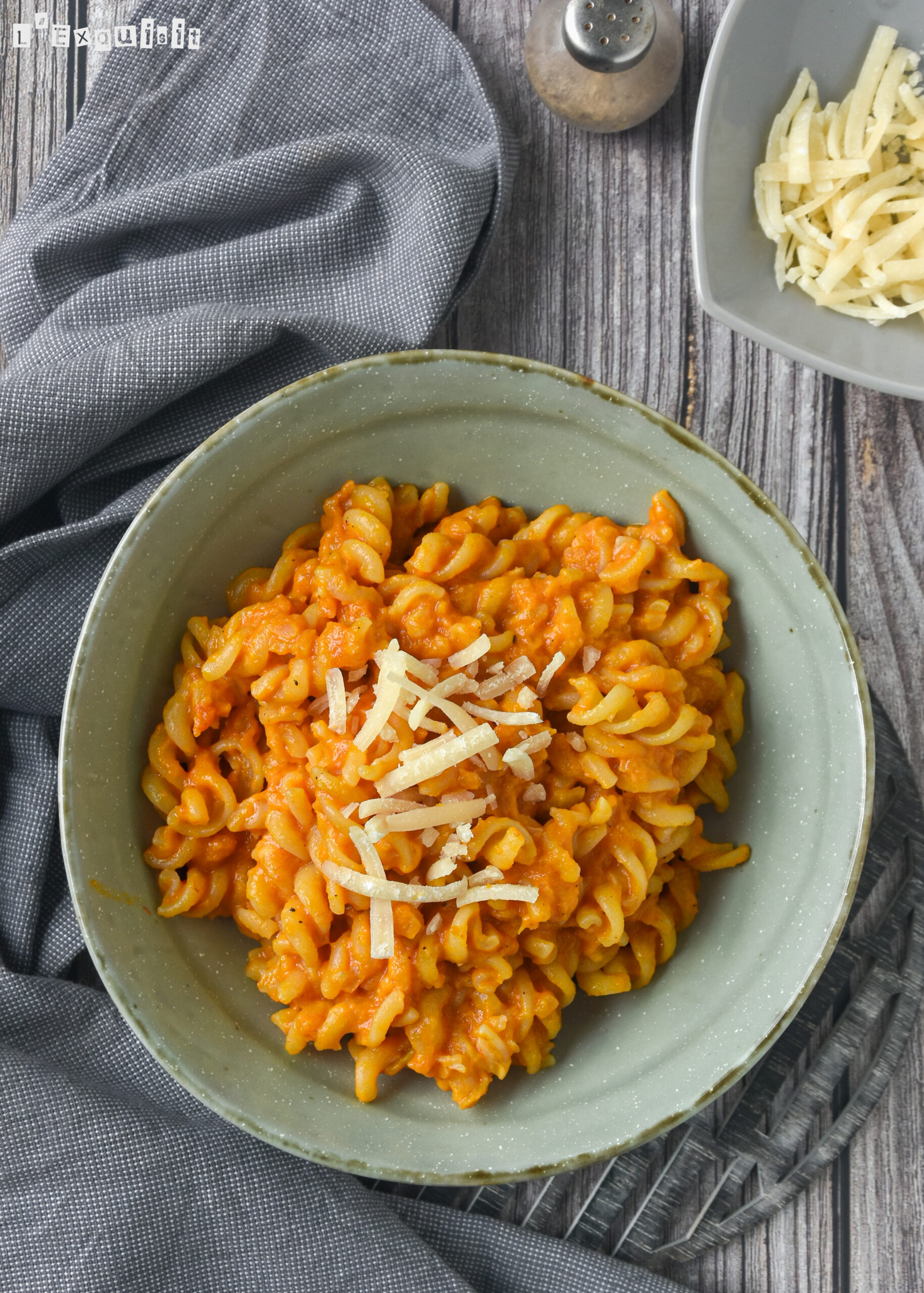 Escurrir la pasta y añadirla a la salsa, junto a parte del queso Parmesano. Servir inmediatamente con el resto del queso en un cuenco, para que cada comensal se sirva al gusto.