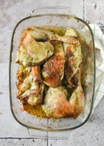 Este tipo de recetas de pollo al horno me encantan: se marinan en la nevera y luego solo queda hornear. La de hoy, una de mis marinadas preferidas. Y lo acompaño con patatas especiadas para aprovechar el horno.