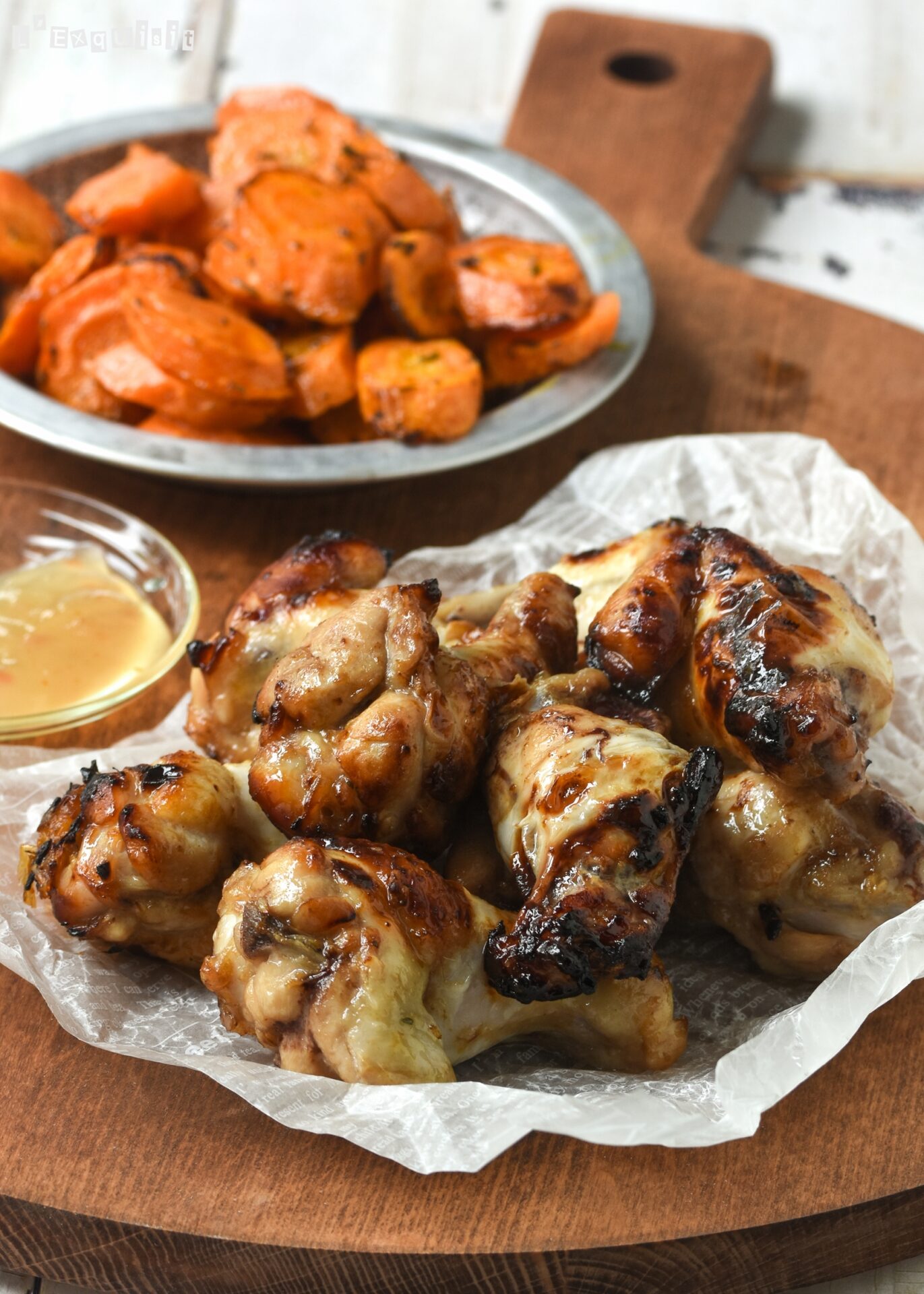Mezclar todos los ingredientes de la marinada en una bolsa, introducir el pollo, mezclar bien y dejar reposar una noche en la nevera.