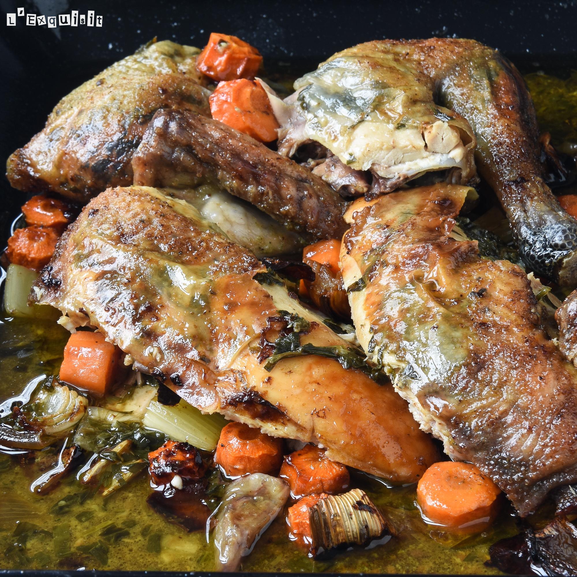 En la receta de hoy os enseño a preparar una salmuera seca, que hace que el pollo quede muy tierno, incluso las pechugas. El secreto después está en hornearlo sobre una cama de verduras, así el pollo no se hierve en el jugo…