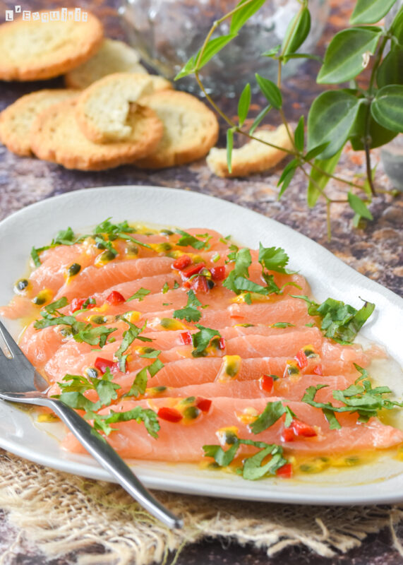 Hoy traigo una variedad de cebiche, se trata de marinar pescado con un aliño cítrico, en la receta he utilizado fruta de la pasión o maracuyá y queda delicioso!