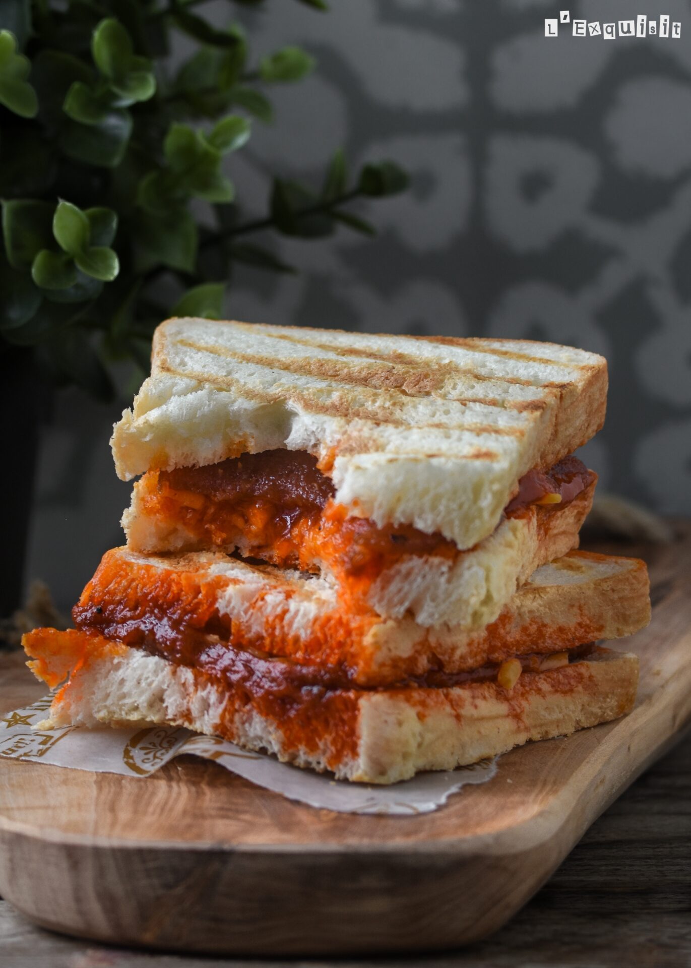 Repartir el membrillo sobre una rebanada de pan, cubrir con la sobrasada y el queso. Tapar con la otra rebanada y tostar en la sartén durante 2-3 minutos por lado. Servir inmediatamente.