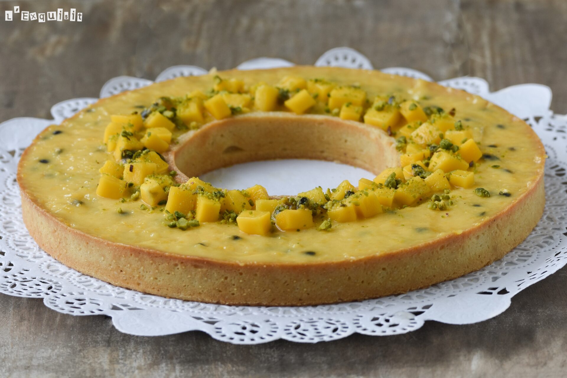 Esta tarta sencilla luce mucho en la mesa y el curd de mango con fruta de la pasión es adictivo! Os lo enseñé hace años a preparar aquí y tengo siempre en la nevera (envasado al vacío), lo utilizo en esta tarta y en estos pastelitos y también para acompañar los scones…