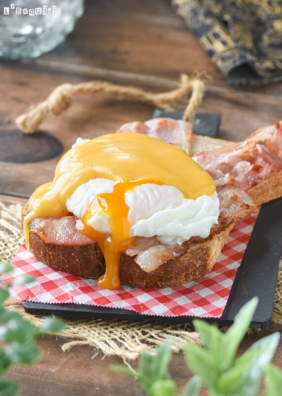 Tostada con bacon, huevo poché y salsa de Cheddar {con y sin gluten}