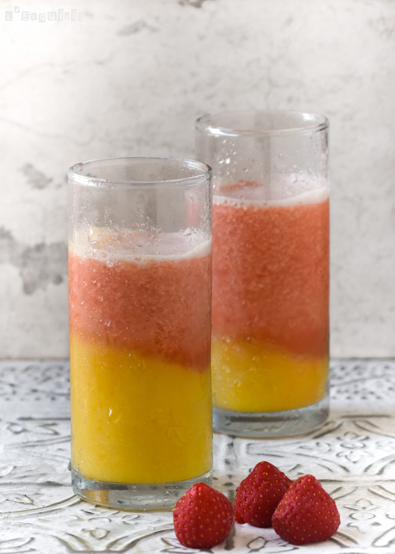 Sugerencias: para evitar que se mezclen los zumos entre sí, echar el zumo de fresa sobre el dorso de una cuchara, así se desliza suavemente.